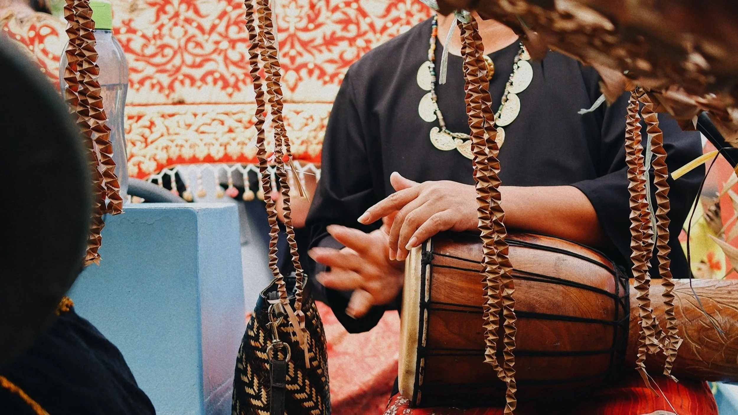 Johnny playing the traditional Melanau drum during the Kaul ceremony. (Kampung Tellian, Mukah 2025)