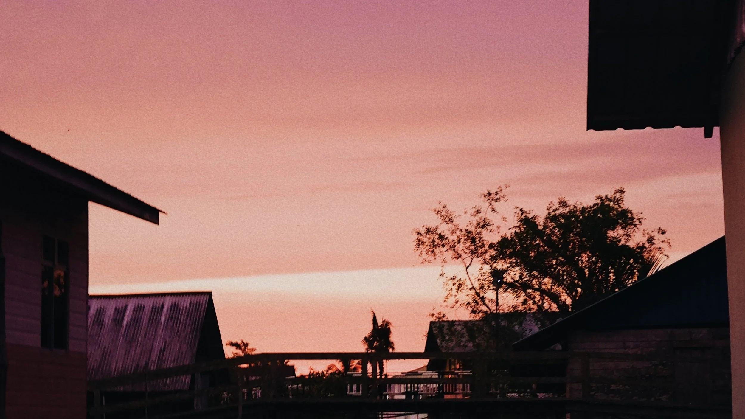 And then came sunset - wooden bridge silhouettes stretched across the river, people strolling slowly, trees swaying in the breeze. It was a serene and breathtaking scene.