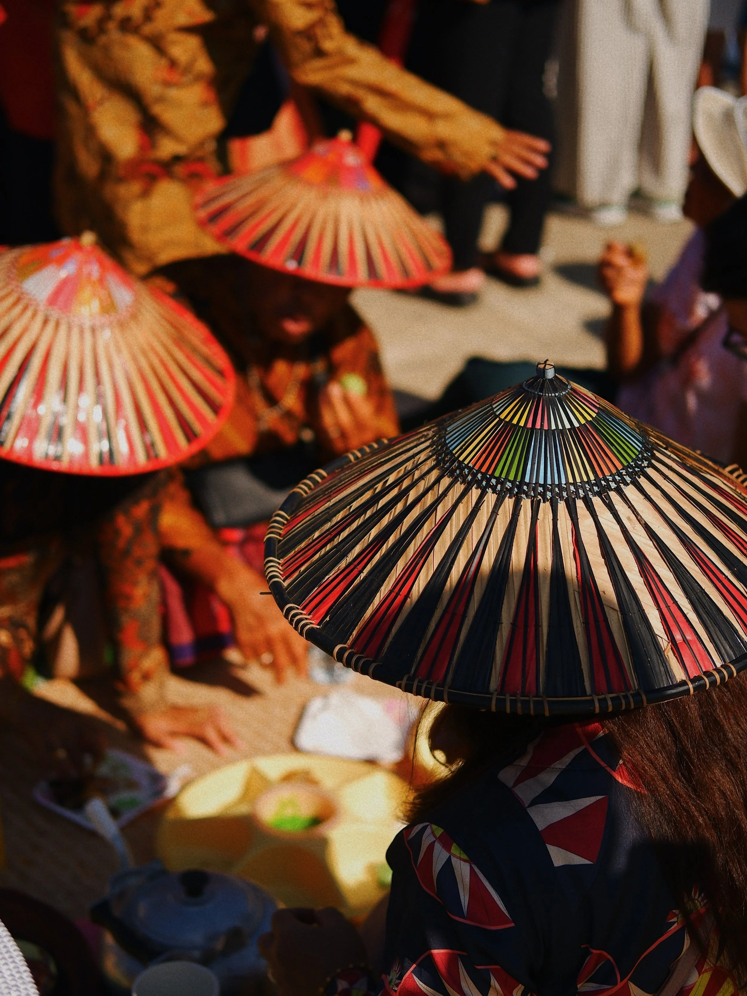 Shining Terendak hats as we shared food (Tapak Kaul, Mukah 2025)