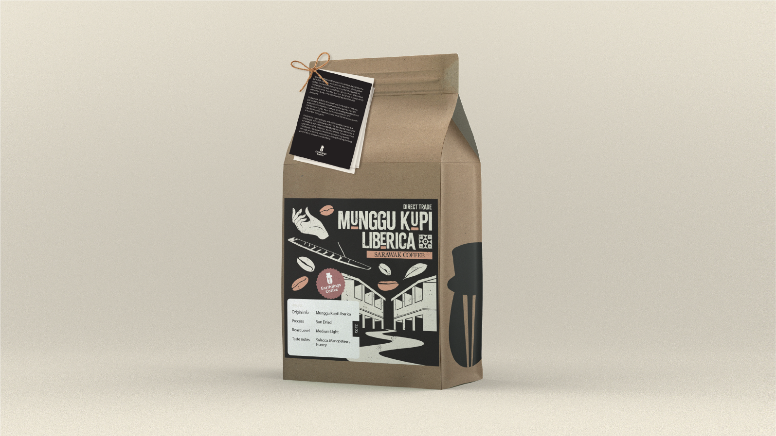 Alongside their efforts to supply equipment, dry houses and machinery, and to conduct coffee planting training deep in the rainforest of Borneo, Earthlings Coffee Roasters has reached out to us to create a series of packaging that reflects the lives of the local coffee farmers and to also highlight their culture.